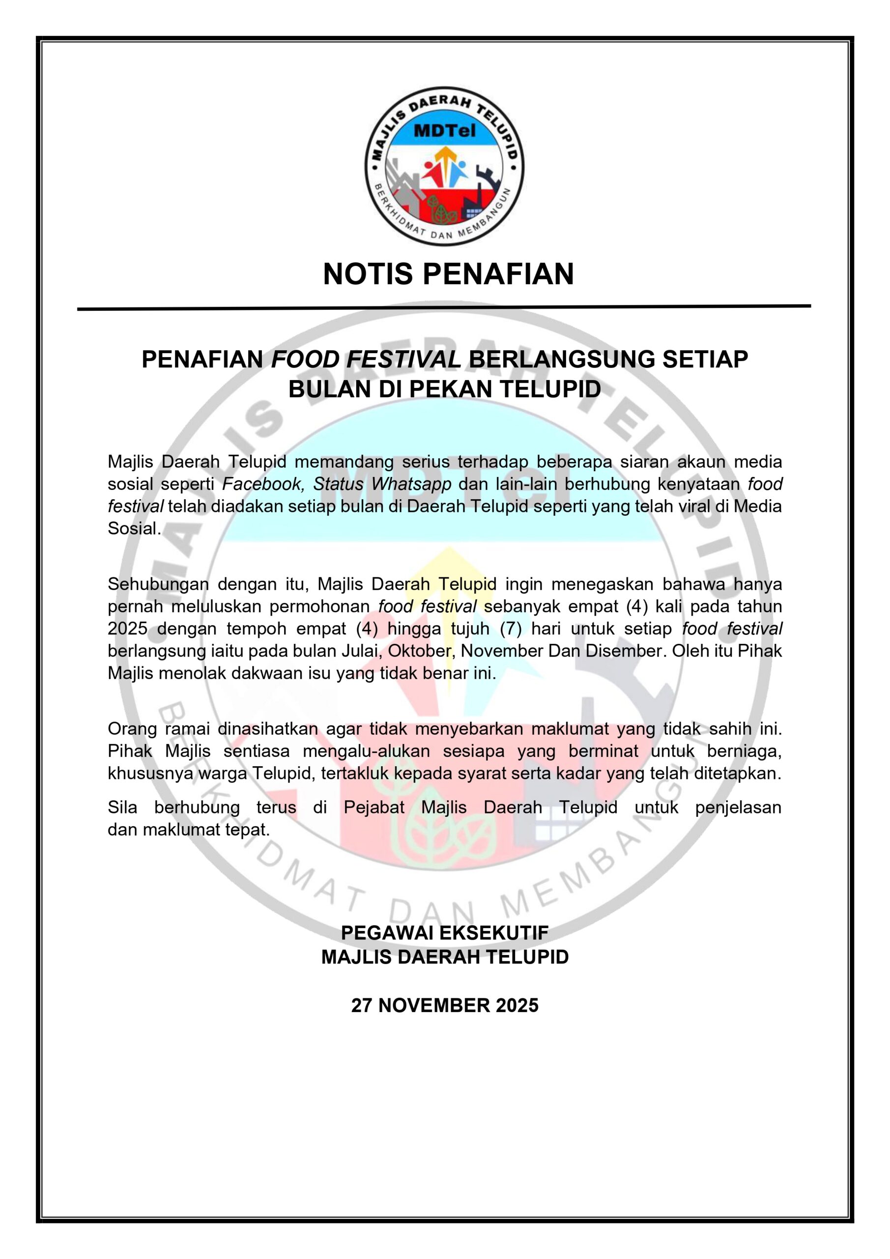Welcome to the Official Website ofGREEN OFFICETELUPID DISTRICT COUNCIL NOTIFICATION NOTICEDigitisation of Majlis Daerah Telupid's Services SEE MORE NOTIFICATION NOTICEBan on the Use of Single-Use Plastic Bags SEE MORE DISCLAIMER NOTICEDenial of Food Festivals Taking Place Every Month in Telupid SEE MORE ACTIVITIES NEWS LAWATAN KERJA BAHAGIAN WILAYAH PERSEKUTUAN DAN KERAJAAN TEMPATAN PEJABAT PERDANA MENTERI SEE MORE TAKLIMAT KESIHATAN DAN CABUTAN LOT BAZAR RAMADAN 2026 SEE MORE CHRISTMAS CELEBRATION 2025 SEE MORE INSPECTION OF OPERATING LICENSES AT PALM OIL MILLS SEE MORE Dikemaskini pada 23/2/2026
